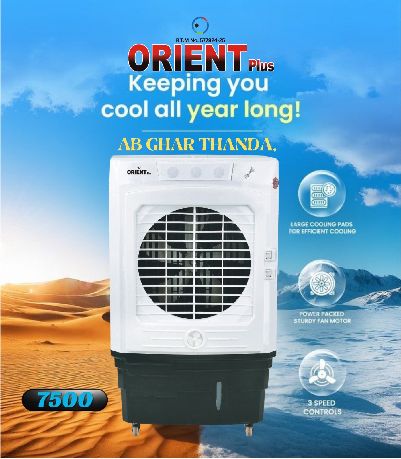 ORIENT Plus Room Air Cooler Model 7500